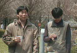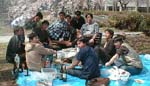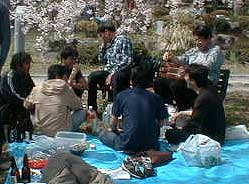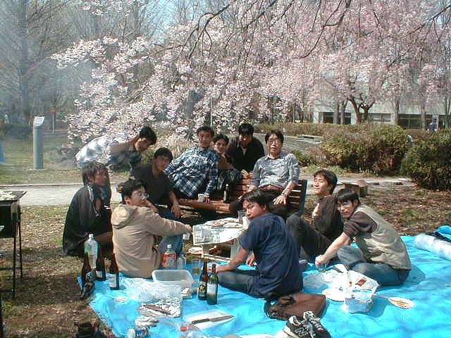 暖かな日差しの中、黒川研恒例行事のお花見が行なわれました。今年は桜の開花が例年よりも4、5日早かったのですが、3月末に季節はずれの大雪が降ったので、一同ソメイヨシノでのお花見を期待しましたが…。さすがにこの日まで散るのを待ってはくれず、池のしだれ桜でのお花見となりました。![]() 今年はいつもの黒川研のメンバーに加えて、4月から着任した助手のK先生も参加されました。どうぞよろしくお願いします!! お昼前からみんなで準備をし、幹事さんのあいさつで(左写真)、さぁ、いよいよお花見の始まりです。こんなに素晴らしいしだれ桜の木の下で、お花見は行なわれました。しかしその時の様子を振り返ると、思い出すのは、肉、魚、お酒…。桜さん、ゴメンナサイ!! 『花より団子』という言葉の意味を実感した1日でもありました(右写真)。とはいえ、みんなでおいしくいただきました。今年の春、卒業された方も遊びに来てくれました。 ![]() ひとまずお腹が膨らむと、K教授を囲んで座談会が始まりました。みんなでコップを片手にいろいろな話をして盛り上がりました。しかし中にはこんな場面も…。 青空の下で飲むお酒は格別!みんな笑顔です。楽しいひとときを過ごすことができました。 さて、そろそろ宴もたけなわ。みんなで片付けをして、教授が先頭を切ってセッティングしてくれた、2次会会場である310へと向かっていきました。 |