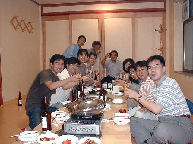 まずはビールで乾杯です。約1名もう呑んでいる人がいます。